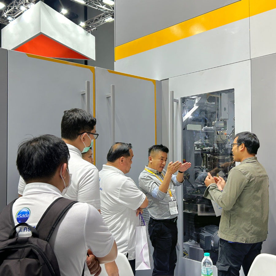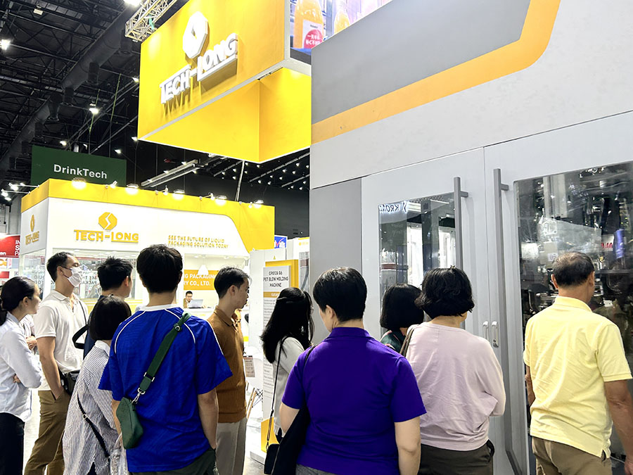達意隆展臺的氣氛也如同泰國天氣般"連連升溫",我們攜倍受關注的CPX10A第六代吹瓶機精彩亮相,全方位展示了吹瓶的過程。這款設備憑借其卓越的高速、穩(wěn)定與節(jié)能特性,再度成為視覺焦點,與此同時,我們積極傾聽客戶們的需求并提供獨一無二的創(chuàng)新解決方案,生動展現(xiàn)了達意隆以高質量服務和數(shù)字化推動可持續(xù)"快速落地"的系統(tǒng)性成果。