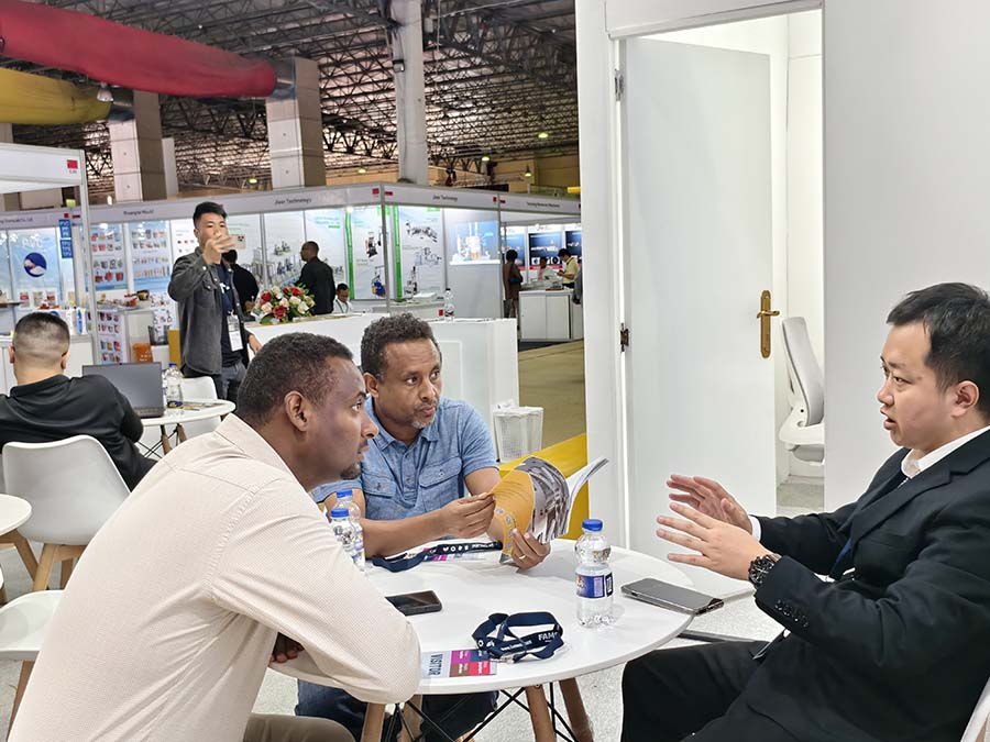 ????Ethiopia plastprintpack展會期間,達意隆展臺吸引了眾多參觀者的目光,新老客戶均對我們的吹灌旋和定制化整線解決方案表示濃厚興趣。展會主辦方陪同埃塞工業(yè)與食品部官員蒞臨達意隆展臺,詳細了解了我們公司與產(chǎn)品的最新情況,并對我們在當?shù)厥袌龅挠绊懥o予高度肯定,表示期盼深化合作,實現(xiàn)互惠共贏。