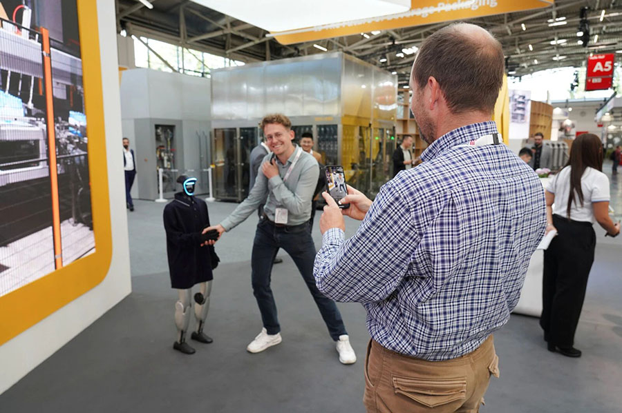 展臺前,人形機(jī)器人正在為觀眾們講解達(dá)意隆的公司介紹與設(shè)備優(yōu)勢,觀眾們紛紛駐足互動,在一問一答間,對達(dá)意隆的技術(shù)實力與產(chǎn)品創(chuàng)新有了更生動的認(rèn)知。